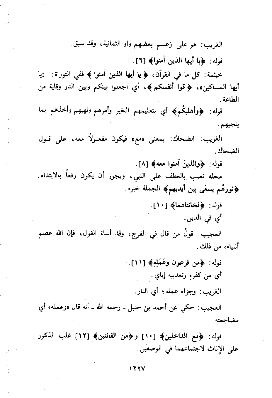 قوله: (وَأَهْلِيكُمْ) أي بتعليمهم الخير وأمرهم ونهيهم وأخذهم بما