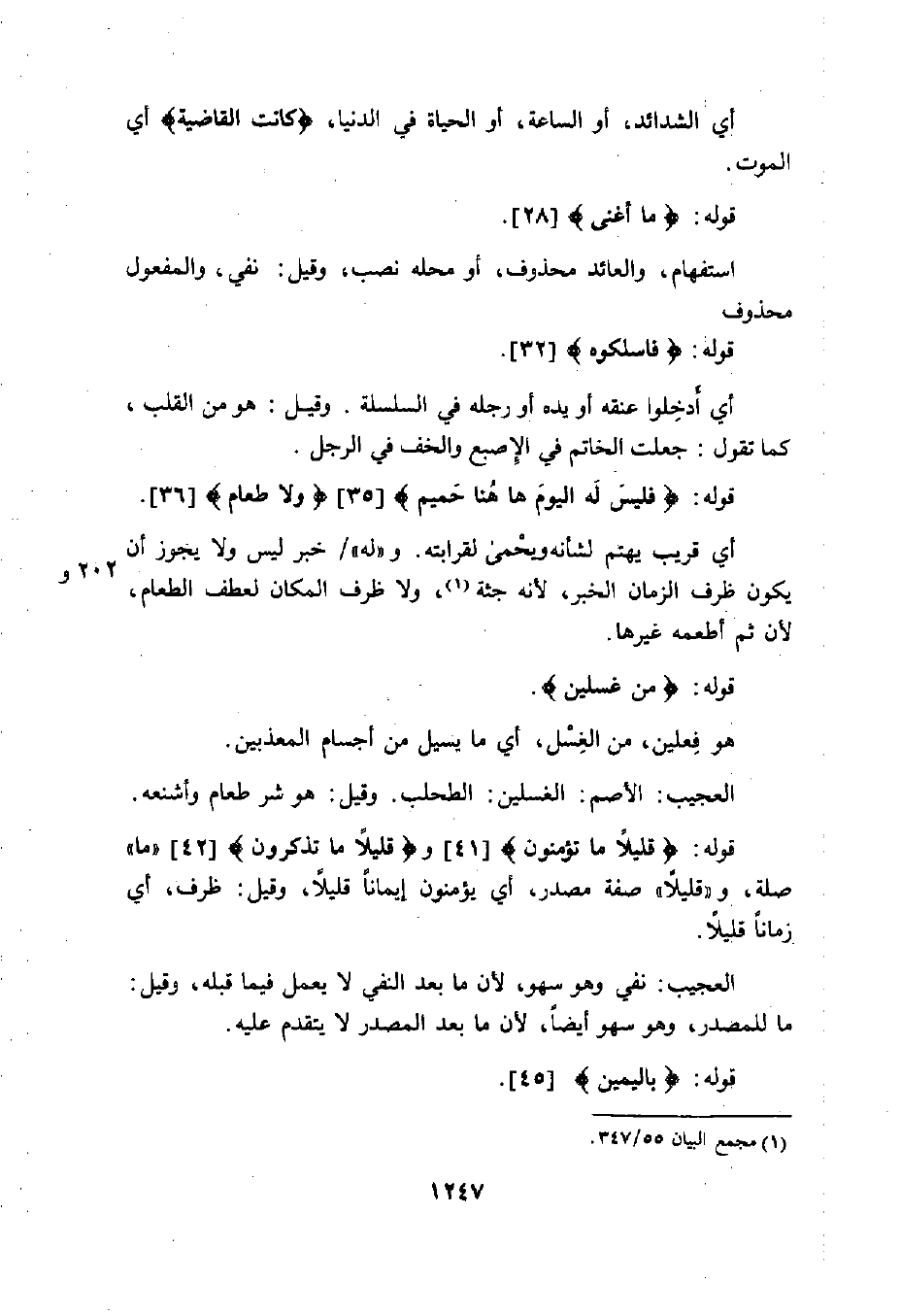 قوله: (فَلَيْسَ لَهُ الْيَوْمَ هَاهُنَا حَمِيمٌ (35) وَلَا طَعَامٌ) .