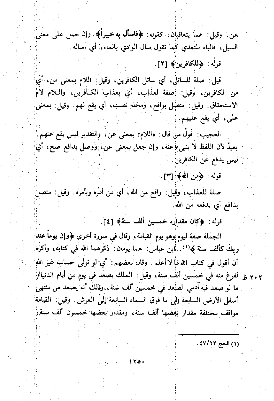 أنَ أقول في كتاب الله ما لا أعلم. وقال بعضهم: أي لو تولى حساب غير الله لفرغ منه في خمسين ألف سنة، وقيل: الملك يصعد في يوم من أيام الدنيا
