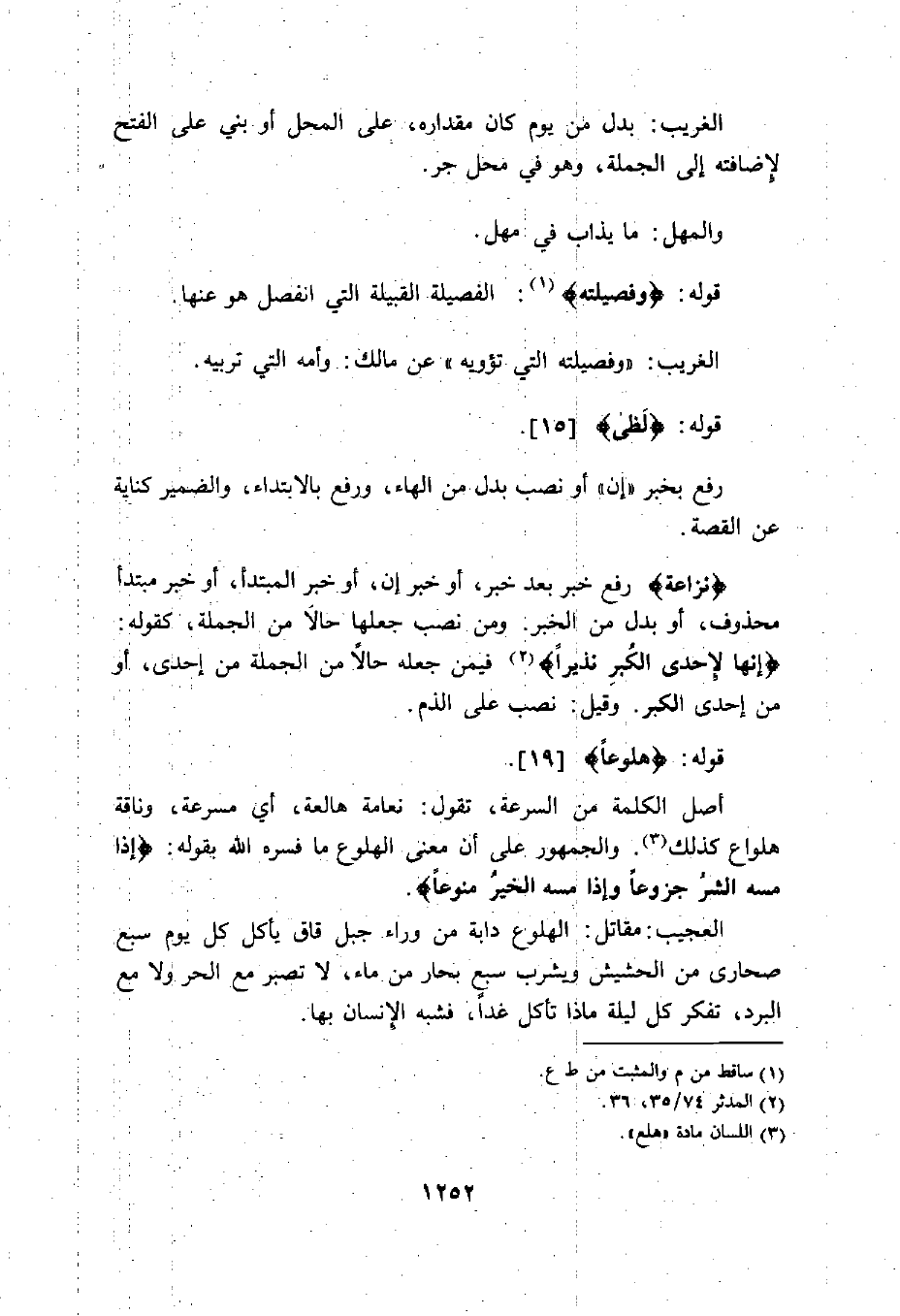 والجمهور على أن معنى الهلوع ما فسره الله بقوله: (إِذَا مَسَّهُ الشَّرُّ جَزُوعًا (20) وَإِذَا مَسَّهُ الْخَيْرُ مَنُوعًا (21) .
