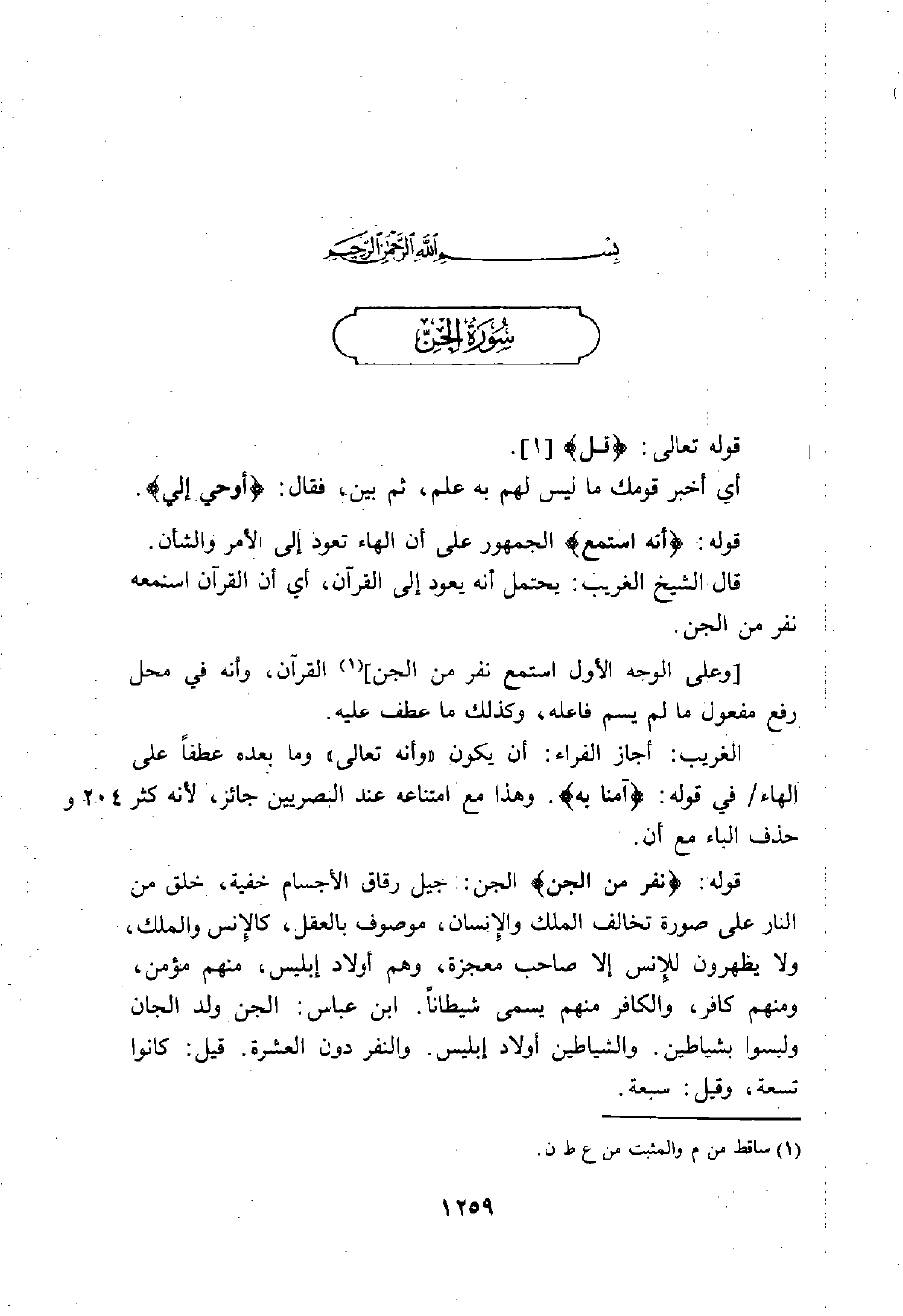 قوله تعالى: (قُلْ أُوحِيَ إِلَيَّ أَنَّهُ اسْتَمَعَ نَفَرٌ مِنَ الْجِنِّ فَقَالُوا إِنَّا سَمِعْنَا قُرْآنًا عَجَبًا (1) .