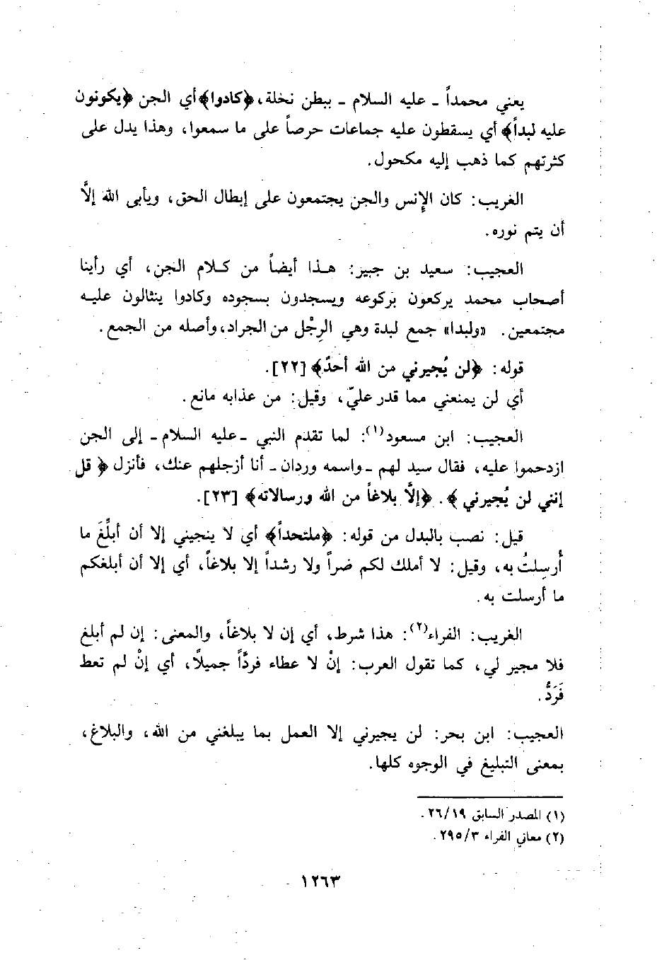 يعني محمداً - عليه السلام - ببطن نخلة، (كَادُوا) أي الجن (يَكُونُونَ عَلَيْهِ لِبَدًا) أي يسقطون عليه جماعات حرصاً على ما سمعوا، وهذا يدل على