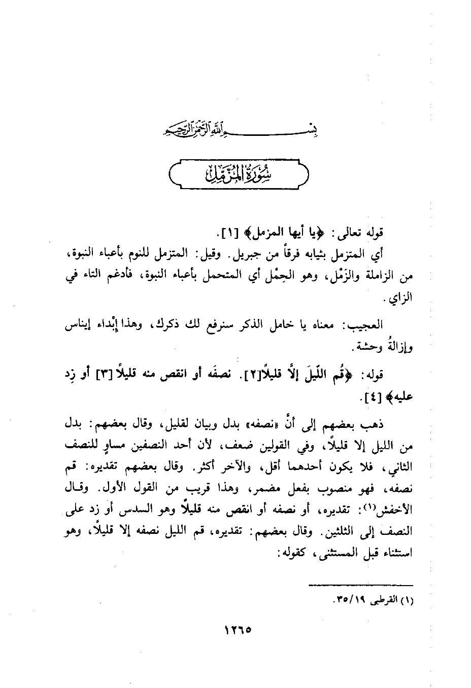قوله تعالى: (يَا أَيُّهَا الْمُزَّمِّلُ (1) .