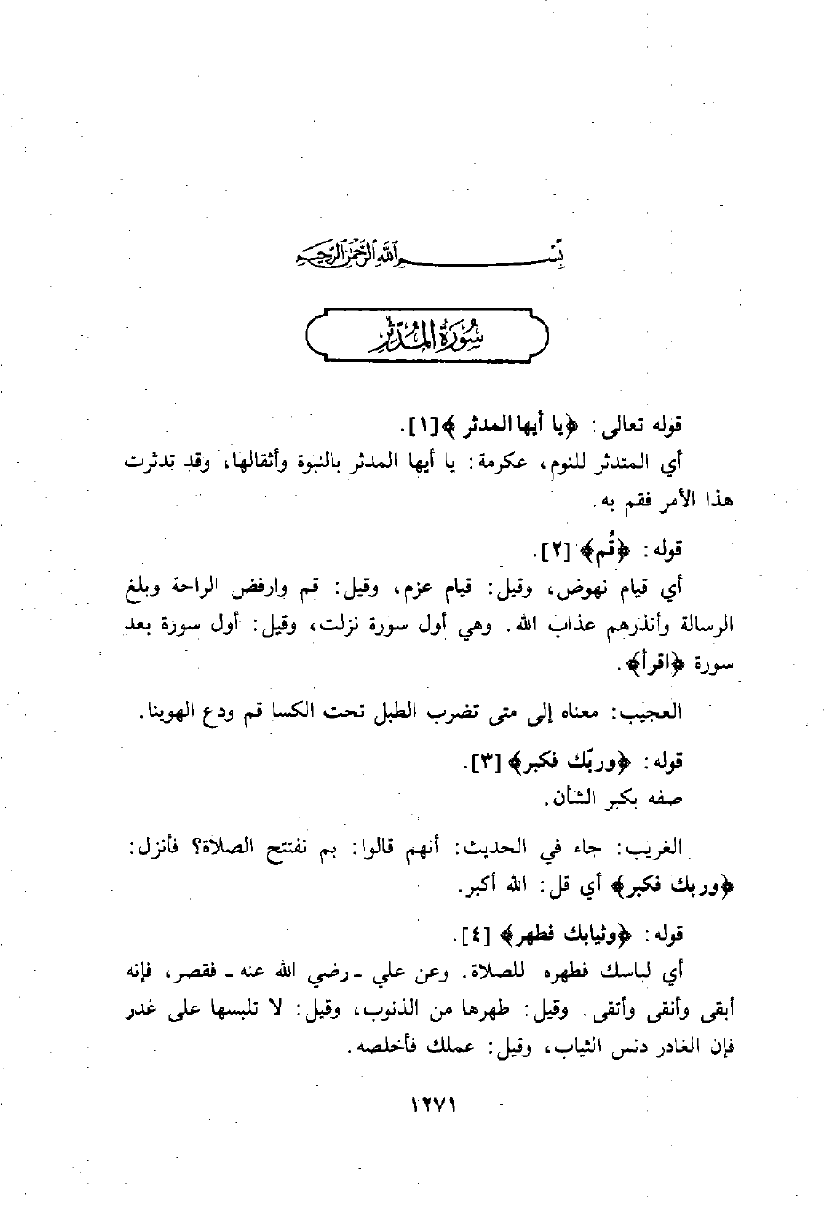 قوله تعالى: (يَا أَيُّهَا الْمُدَّثِّرُ (1) .