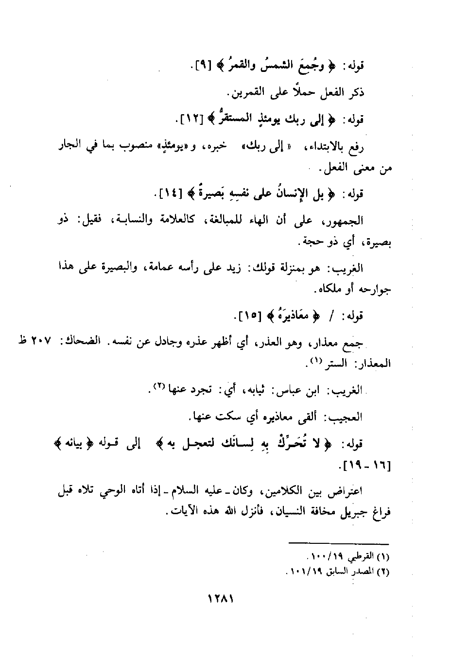 قوله: (وَجُمِعَ الشَّمْسُ وَالْقَمَرُ (9) .
