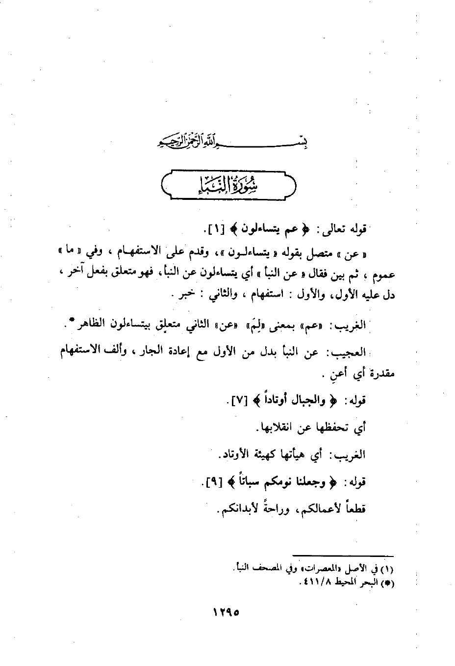 الغريب: "عم " بمعنى "لِمَ" "عن" الثاني متعلق بيتساءلون الظاهر..