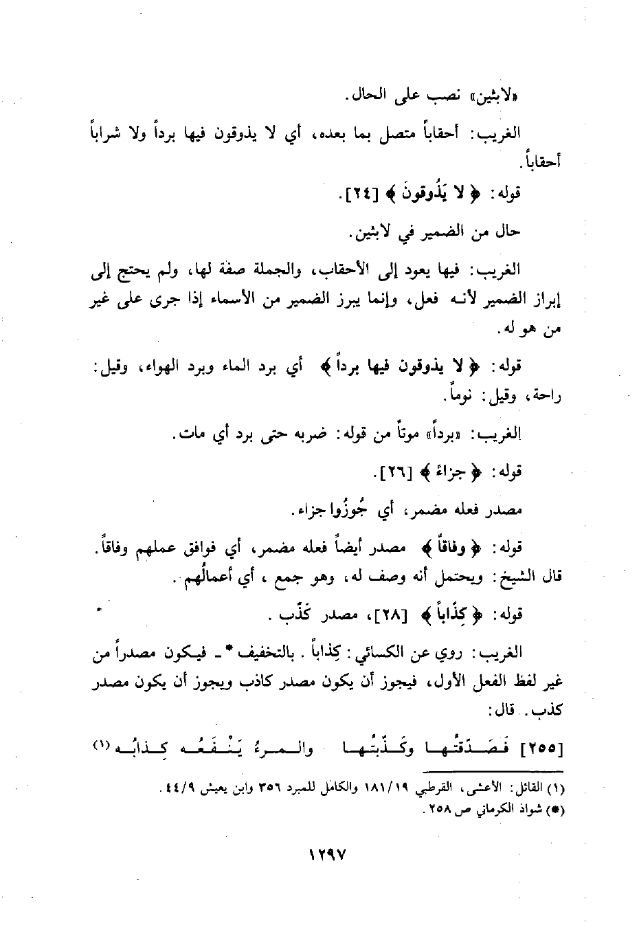 الغريب: أحقابا متصل بما بعده، أي لا يذوقون فيها بردا ولا شراباً
