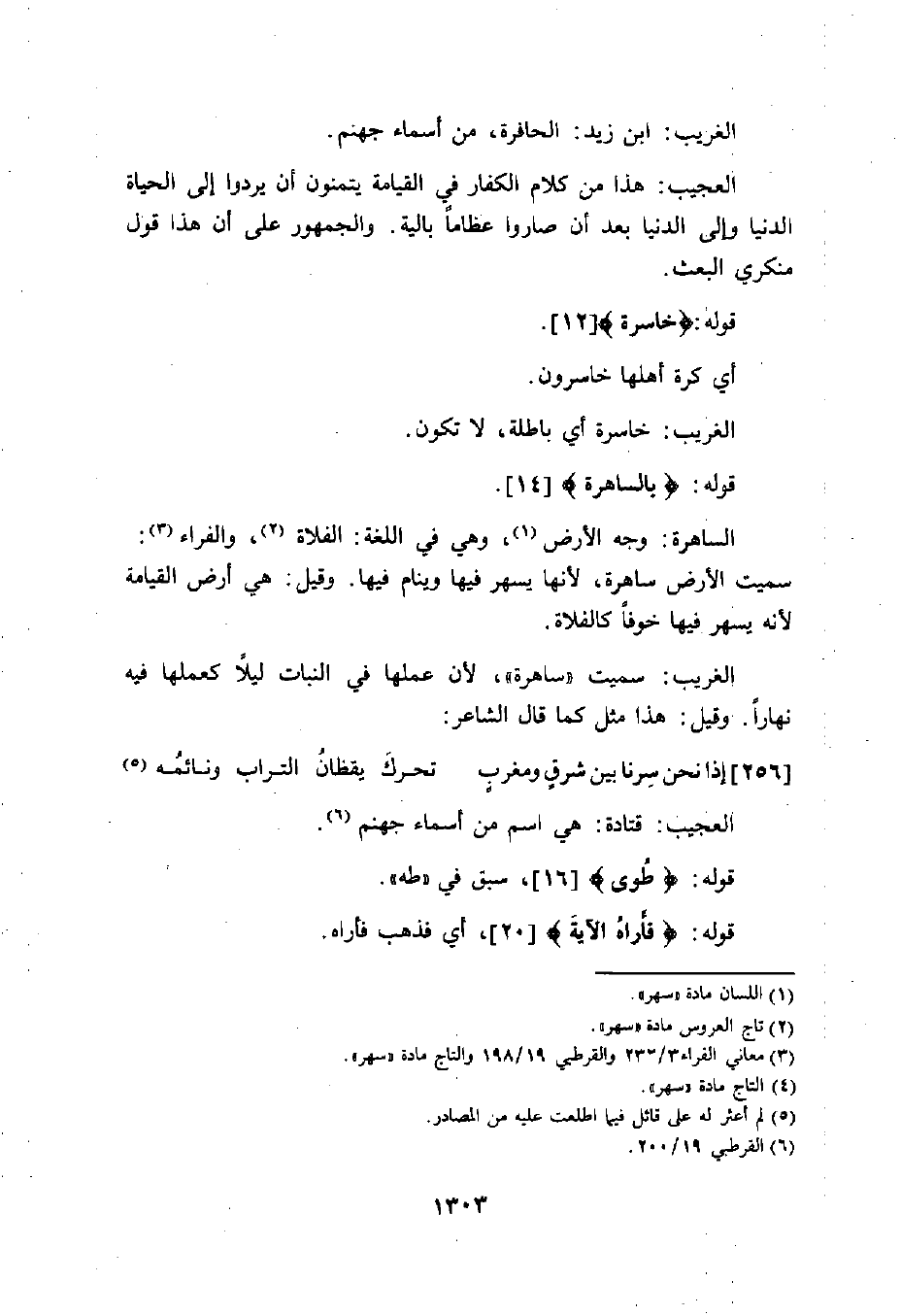 الساهرة: وجه الأرض، وهي في اللغة: الفلاة، والفراء: