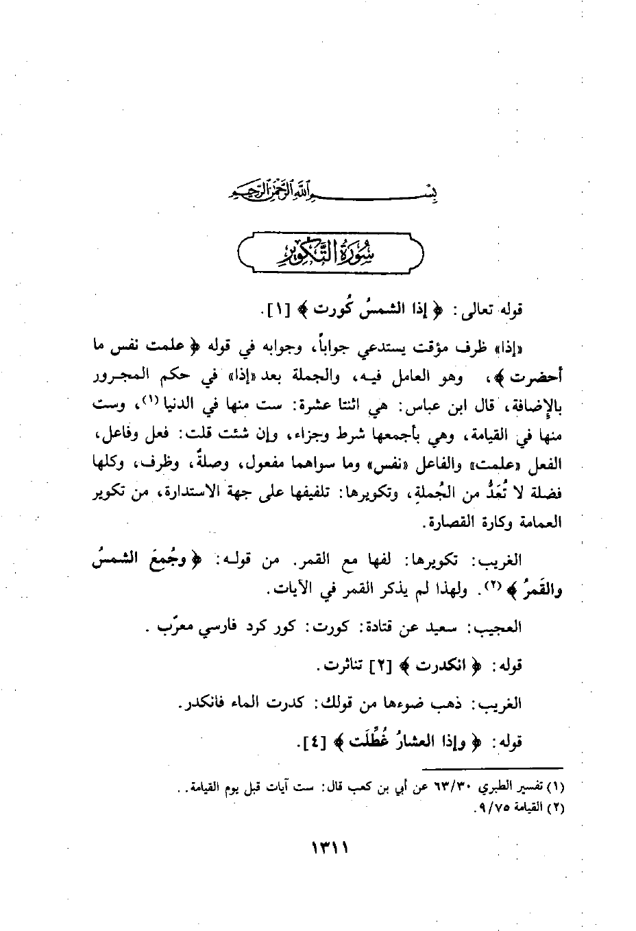 قوله تعالى: (إِذَا الشَّمْسُ كُوِّرَتْ (1) .