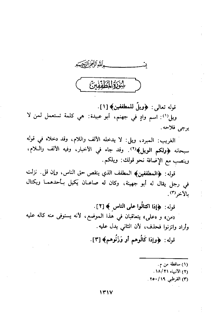 قوله تعالى: (وَيْلٌ لِلْمُطَفِّفِينَ (1) .
