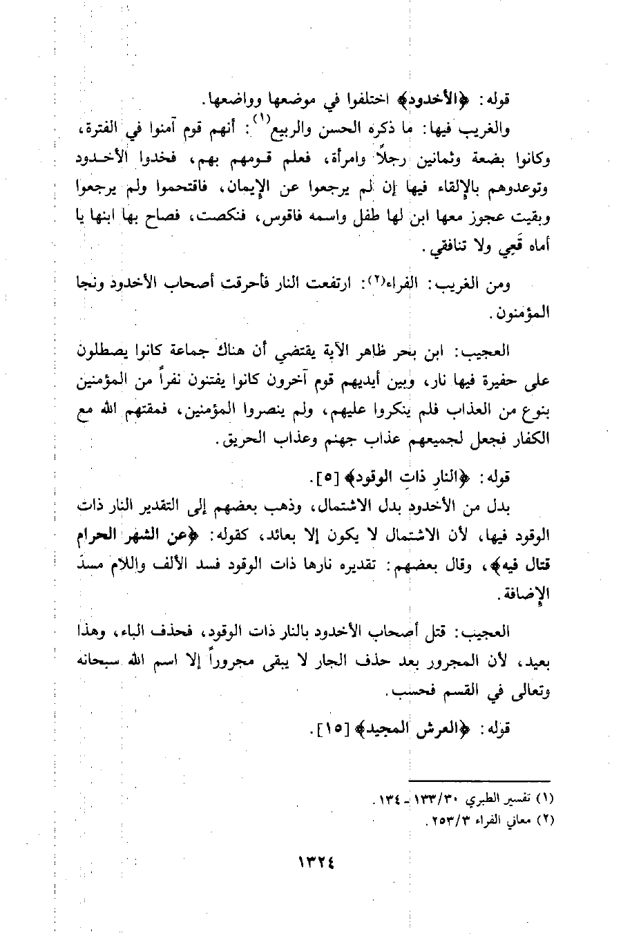 العجيب: قتل أصحاب الأخدود بالنار ذات الوقود، فحذف الباء، وهذا