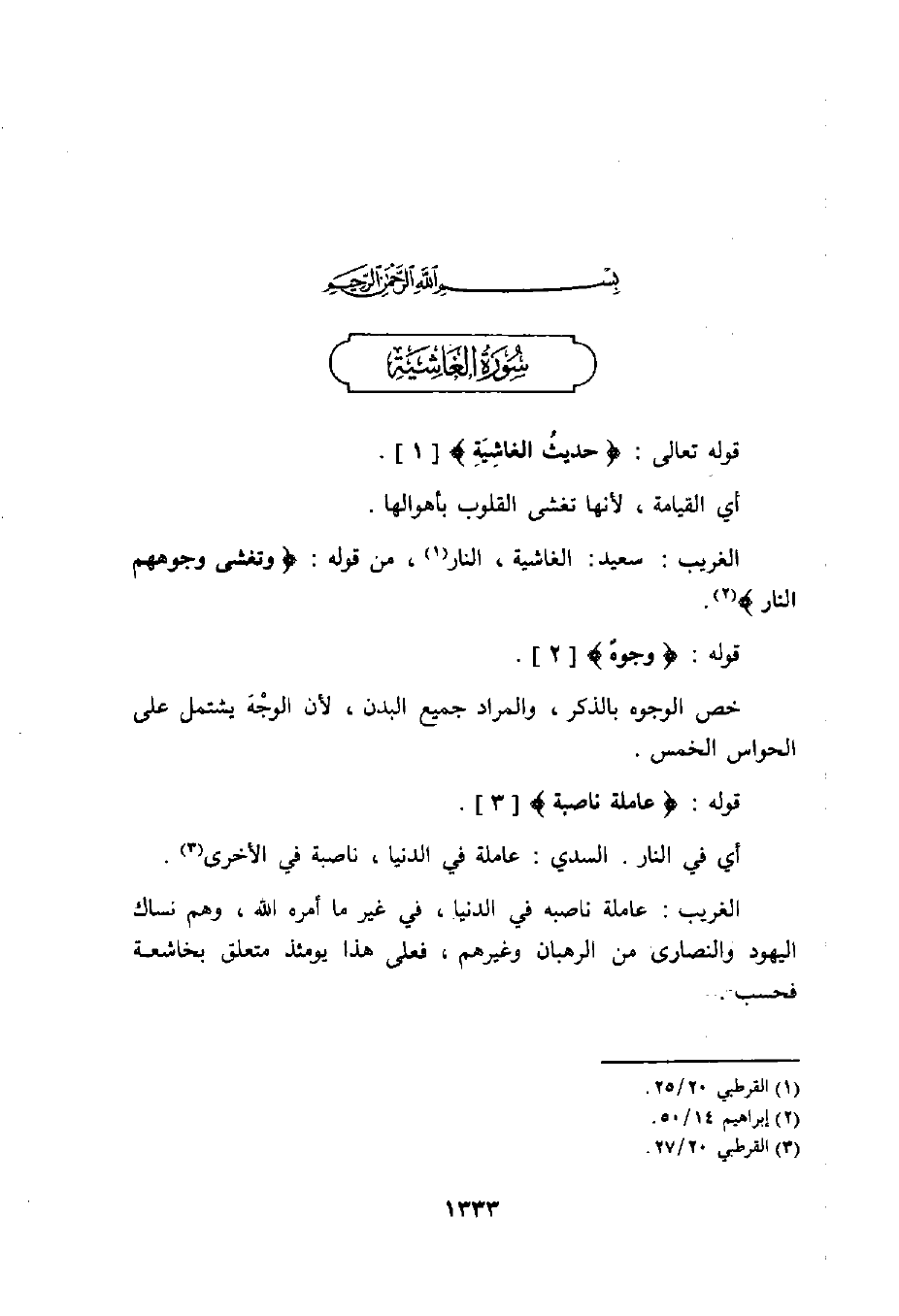 قوله تعالى: (هَلْ أَتَاكَ حَدِيثُ الْغَاشِيَةِ (1) .