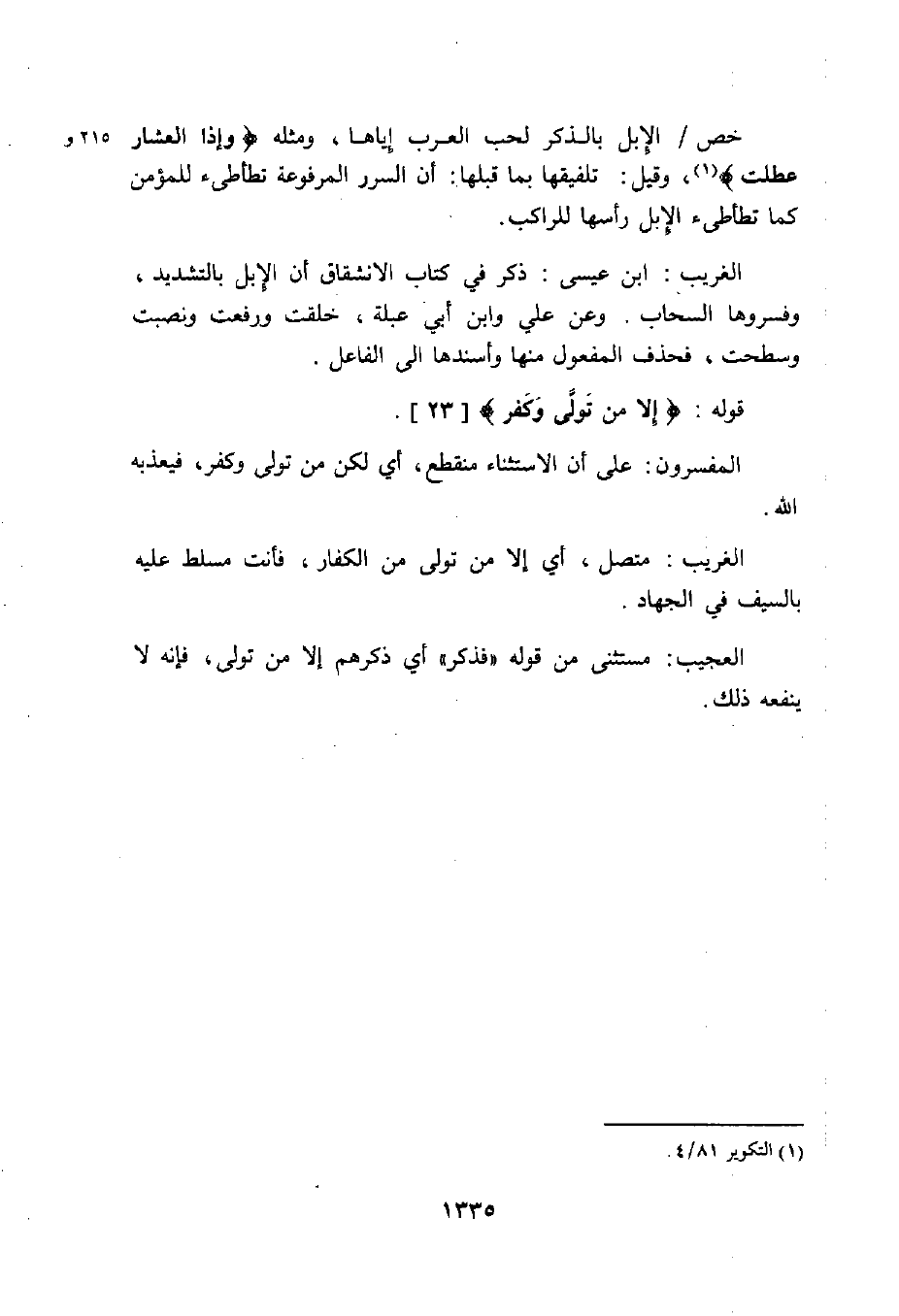قوله: (إِلَّا مَنْ تَوَلَّى وَكَفَرَ (23) .