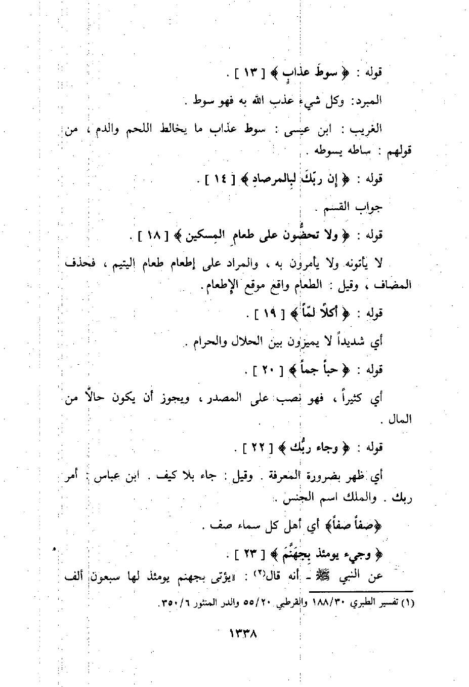 قوله: (وَلَا تَحَاضُّونَ عَلَى طَعَامِ الْمِسْكِينِ (18) .