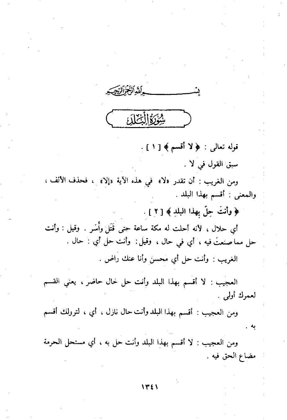 العجيب: لا أقسم بهذا البلد وأنت حل حال حاضر، يعني القسم