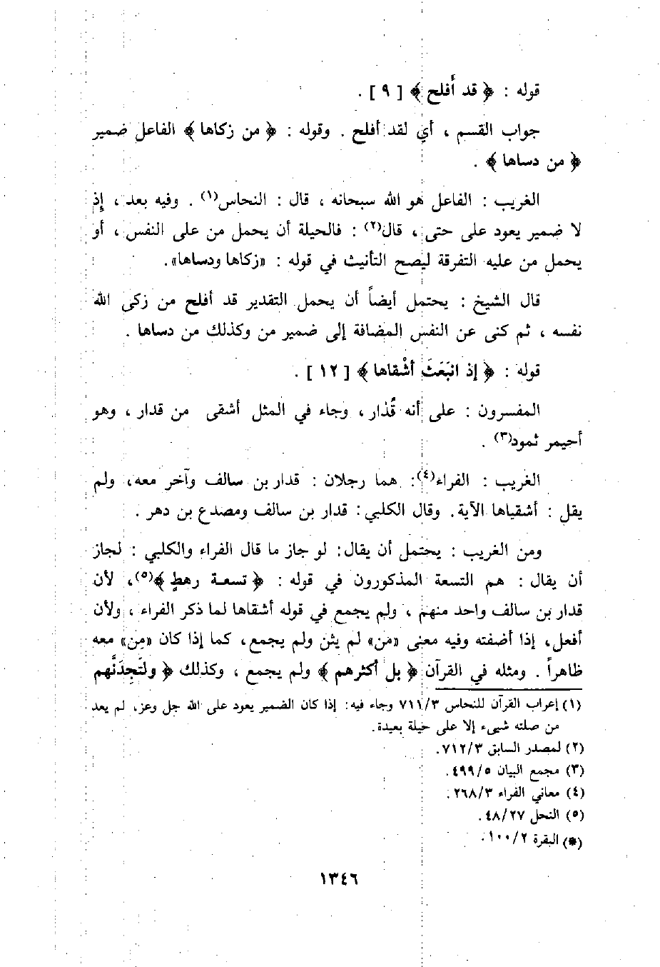 جواب القسم، أي لقد أفلح. وقوله: (من زكاها " الفاعل ضمير