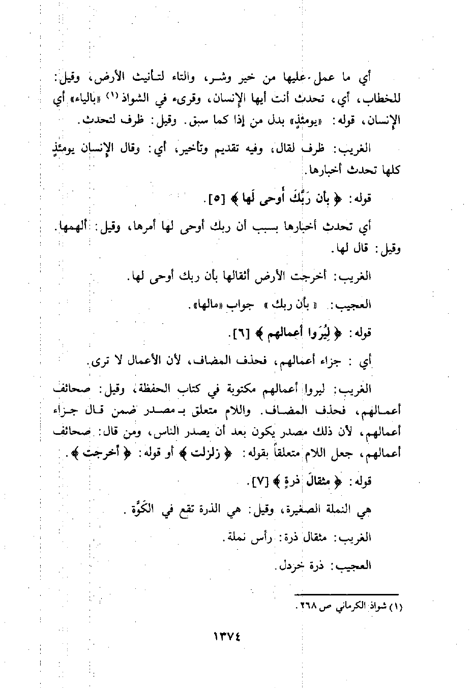 الغريب: أخرجت الأرض أثقالها بأن ربك أوحى لها.