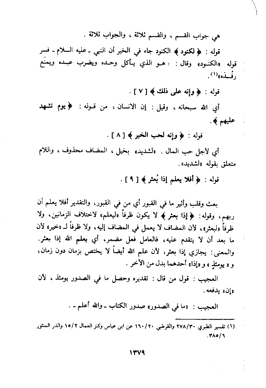 قوله: (لَكَنُودٌ) الكنود جاء في الخبر أن النبي - عليه السلام - فسر