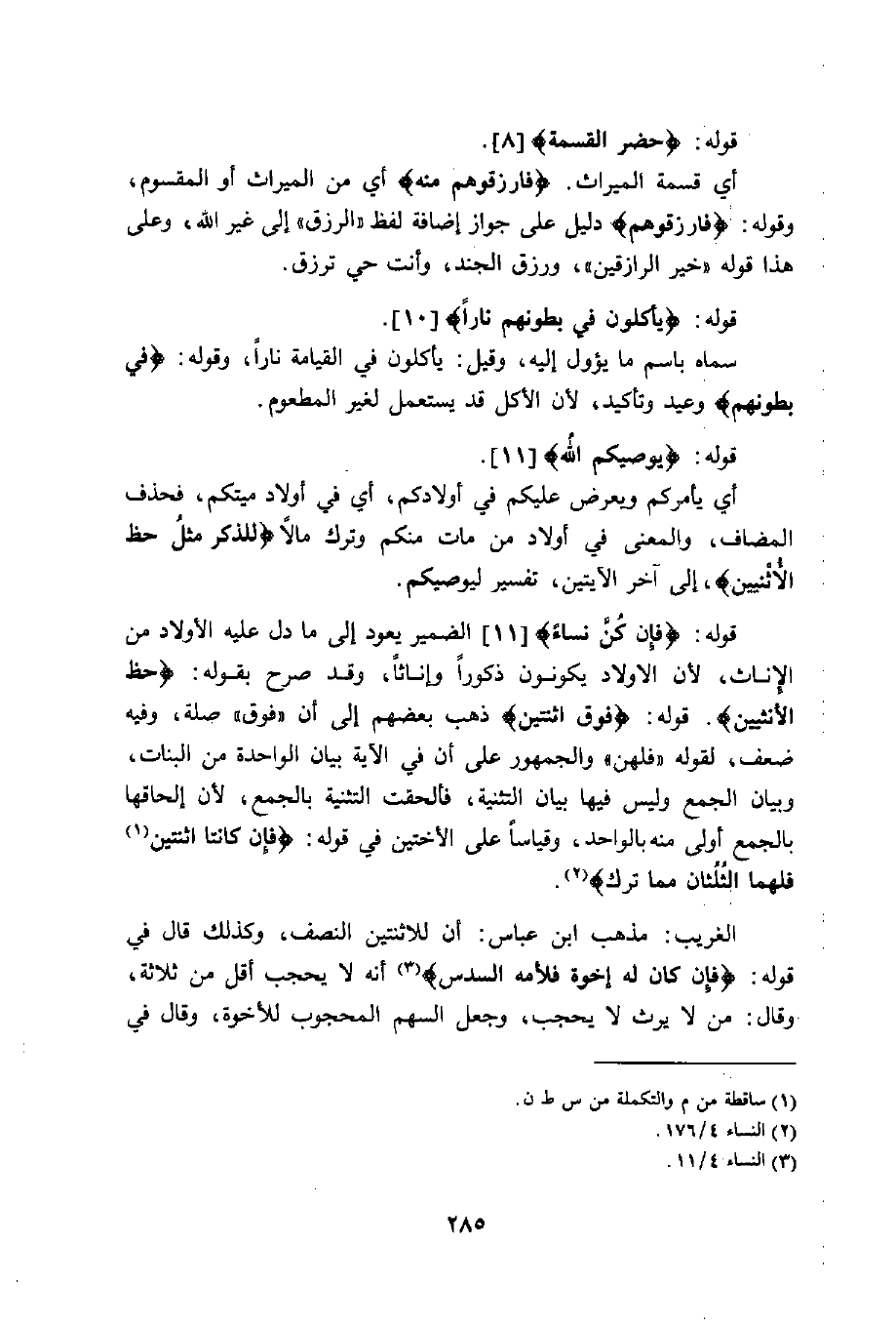 قوله: (فَإِنْ كُنَّ نِسَاءً)