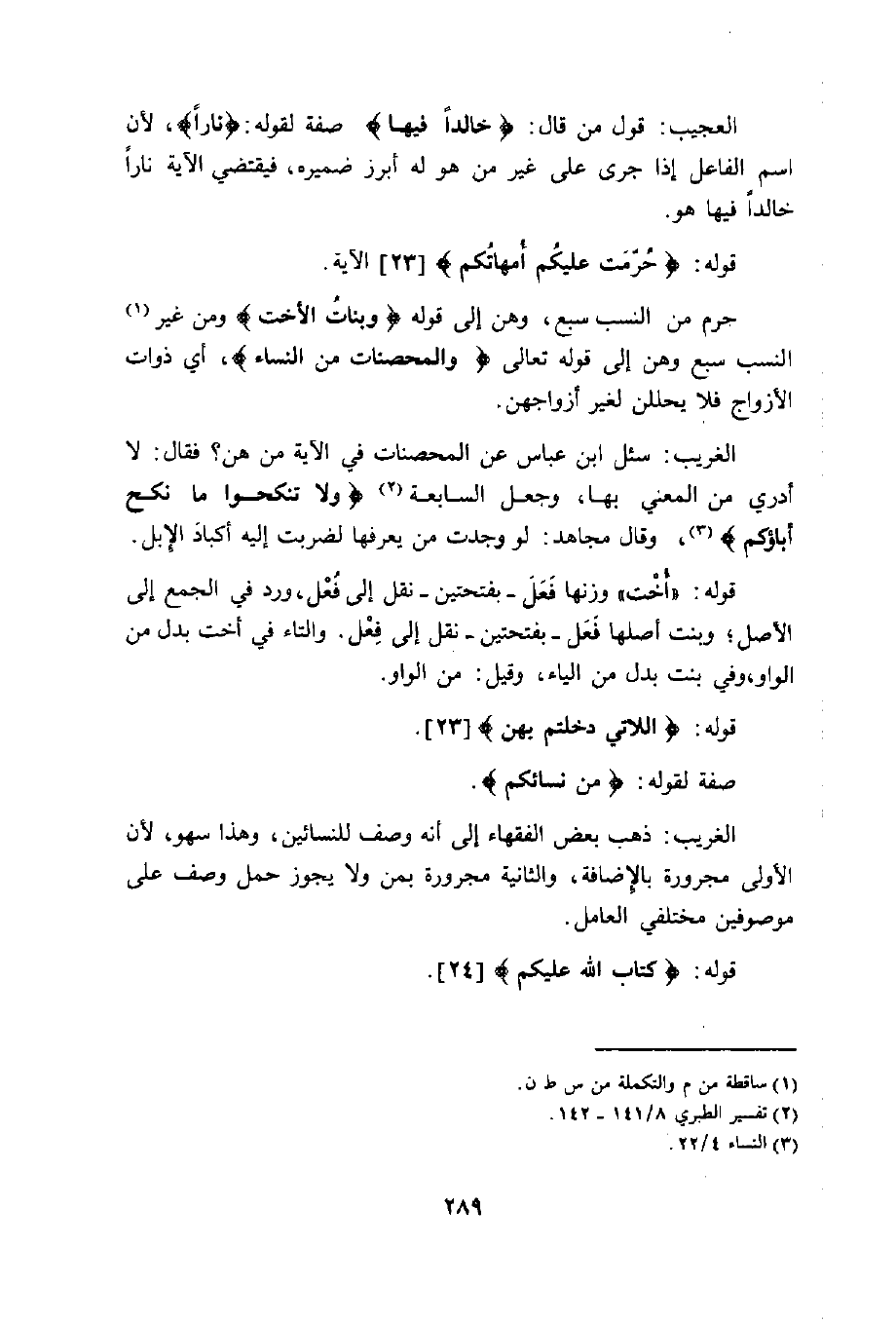 الغريب: سئل ابن عباس عن المحصنات في الآية مَن هن.