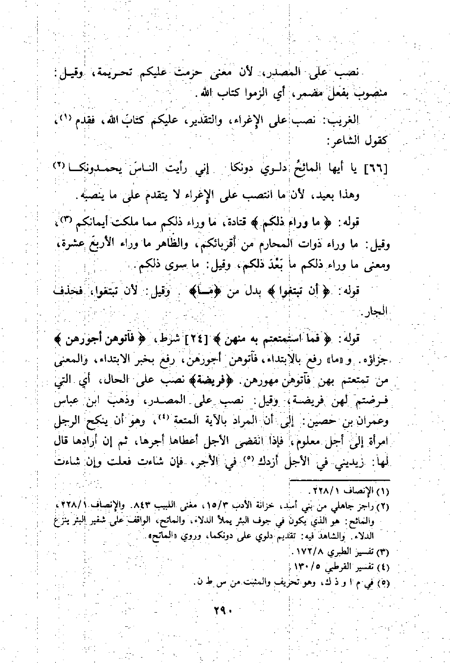 نصب على الحال، أي التي فرضتم لهن فريضة، وقيل: نصب على المصدر، وذهب ابن عباس وعمران بن حصين: إلى أن المراد بالآية المتعة، وهو أن ينكح الرجل امرأة إلى - أجل معلوم، فإذا انقضى الأجل أعطاها أجرها، ثم إن أرادها قال لها: زيديني في الأجل أزدك في الأجر، فإن شاءت فعلت وإن شاءت