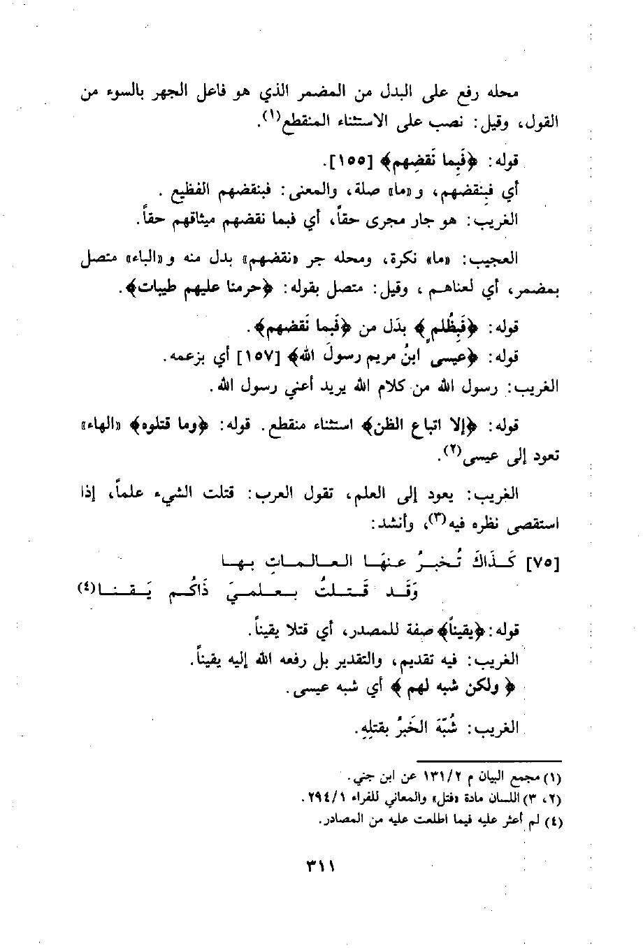 الغريب: فيه تقديم، والتقدير بل رفعه الله إليه يَقِينًا.
