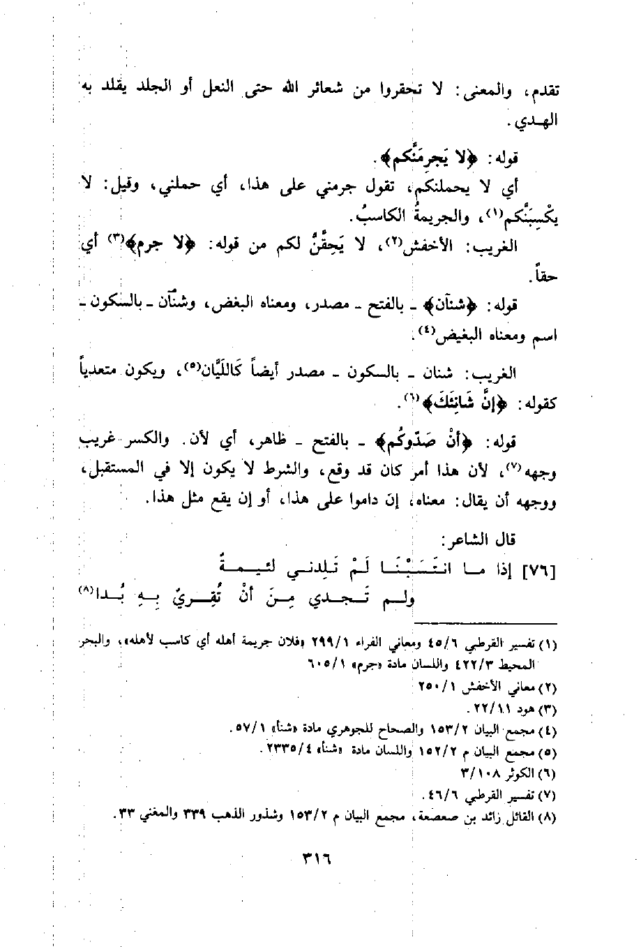 قوله: (شَنَآنُ) - بالفتح - مصدر، ومعناه البغض، (شَنْآنُ) - بالسكون -