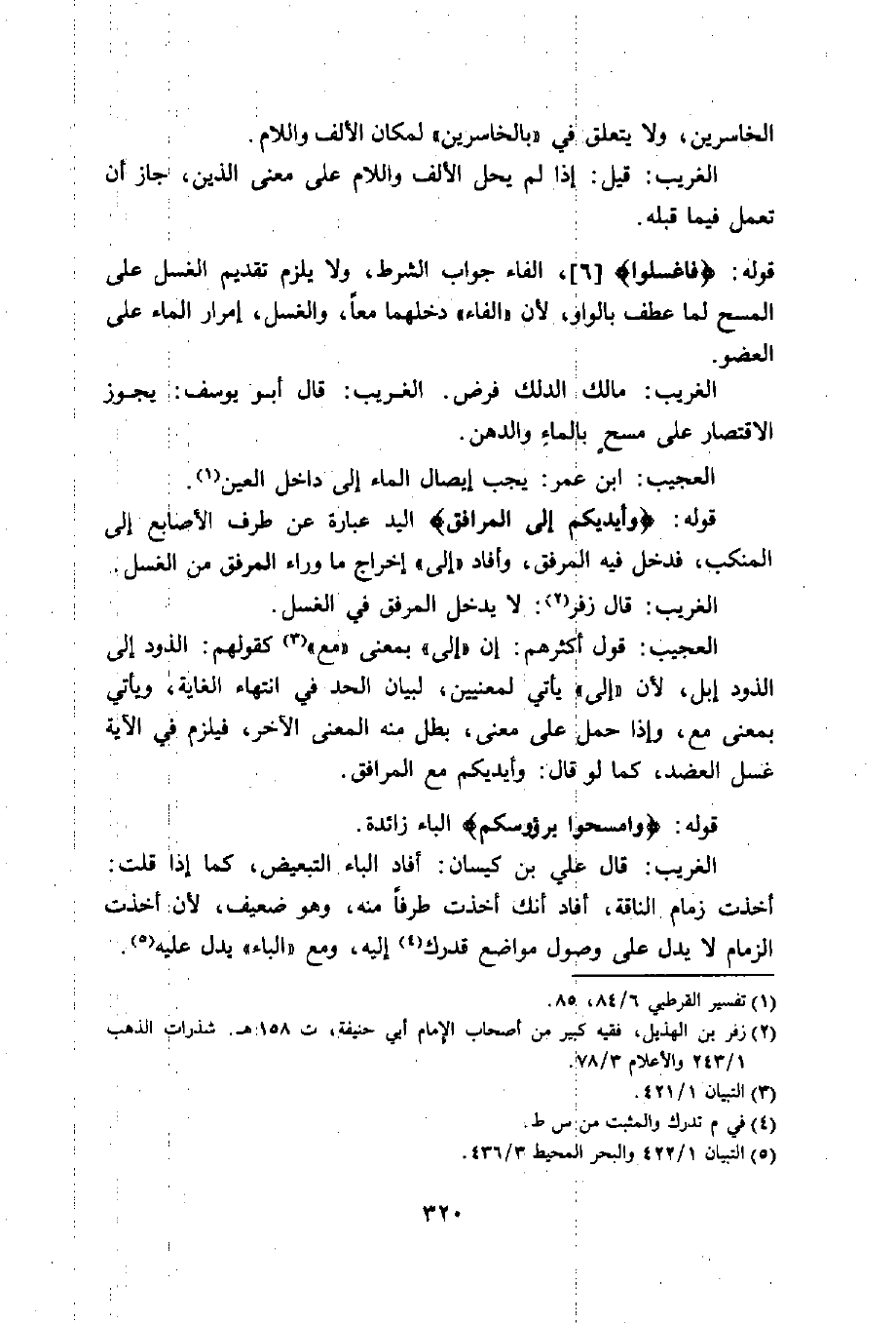 الغريب: قال زفر: لا يدخل المرفق في الغسل.