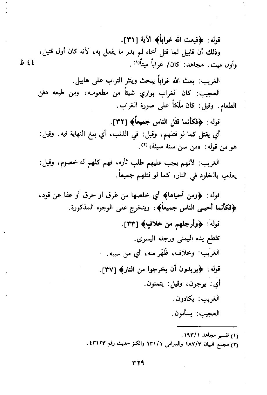 الغريب: بعث الله غراباً يبحث وينثر التراب على هابيل.
