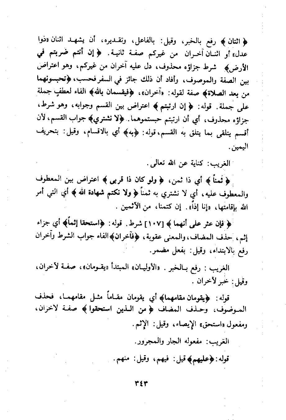 قوله: (اسْتَحَقَّا إِثْمًا) أي جزاء إثم، حذف المضاف، والمعنى عقوبة، (فَآخَرَانِ) الفاء جواب الشرط و (فَآخَرَانِ) رفع بالابتداء.