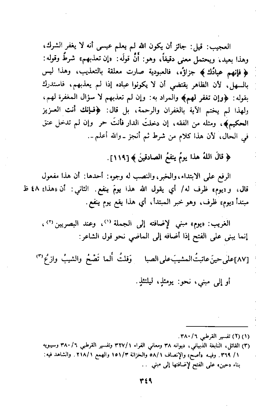 وهذا بعيد، ويحتمل معنى دقيقا، وهو: أنَّ قولَه: (إِنْ تُعَذِّبْهُمْ) شرط