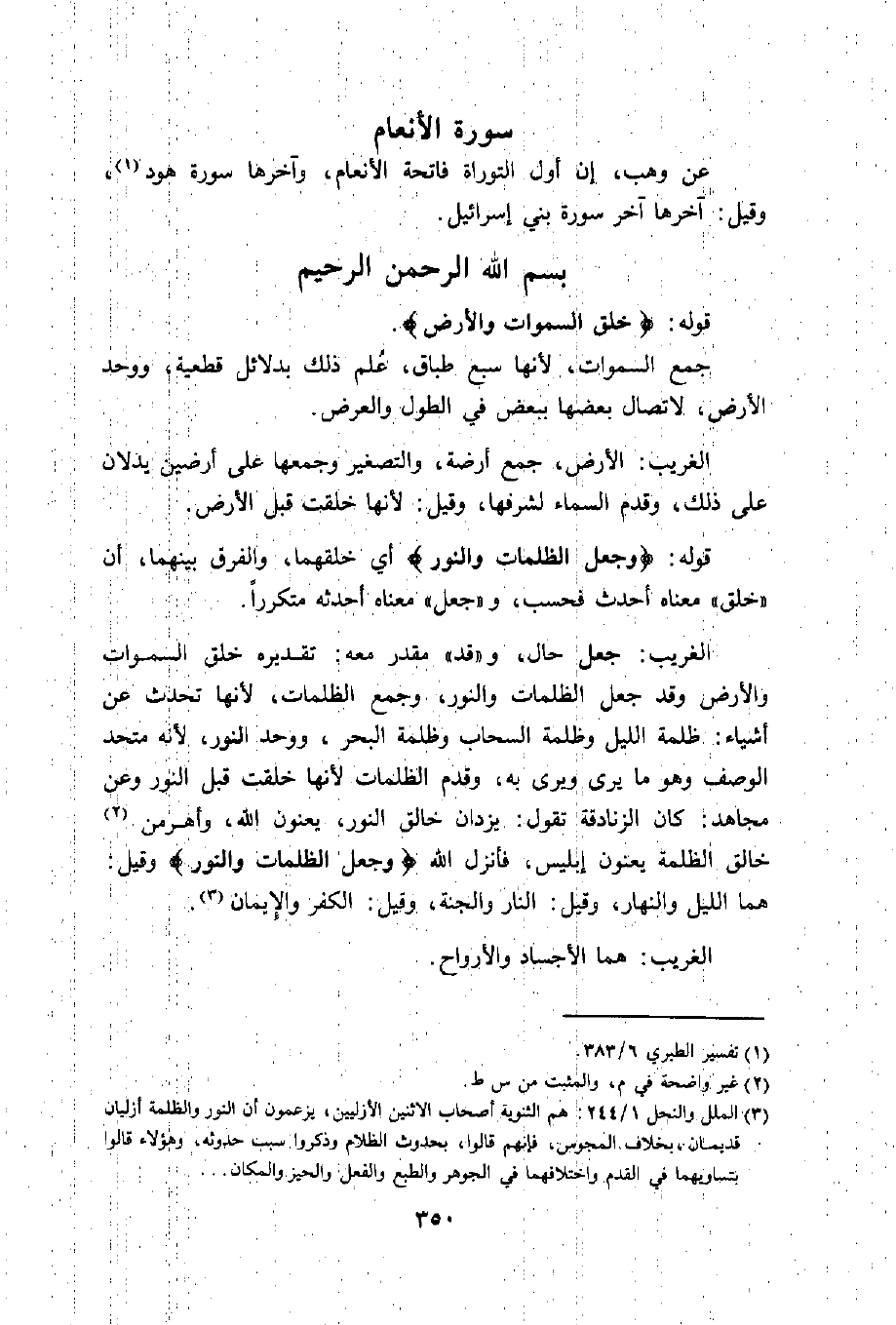 عن وهب إن أول التوراة فاتحة الأنعام، وآخرها سورة هود.