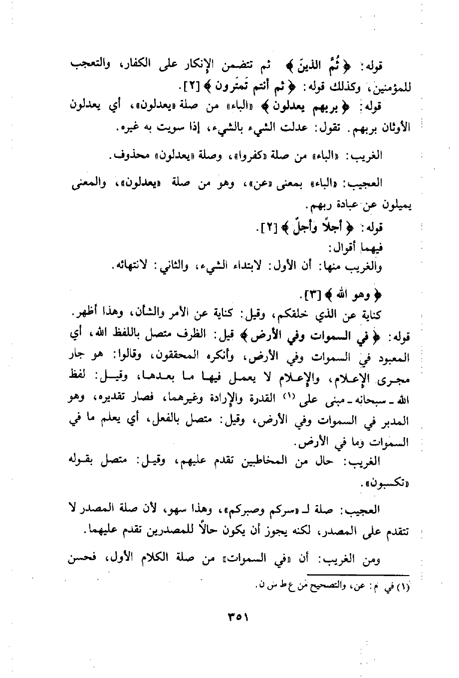 الغريب: " الباء" من صلة "كفروا"، وصلة "يَعْدِلُونَ" محذوف.