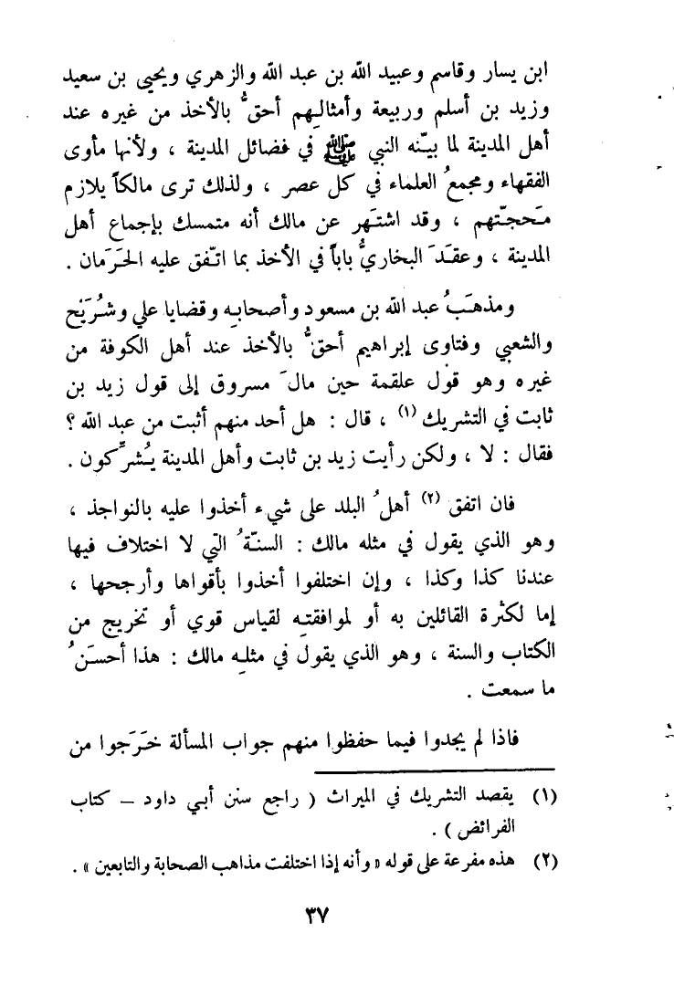 ابْن يسَار وقاسم وَعبيد الله بن عبد الله وَالزهْرِيّ وَيحيى بن سعيد وَزيد بن أسلم وَرَبِيعَة وأمثالهم أَحَق بِالْأَخْذِ من غَيره عِنْد أهل الْمَدِينَة لما بَينه النَّبِي صلى الله عَلَيْهِ وَسلم فِي فَضَائِل الْمَدِينَة وَلِأَنَّهَا مأوى الْفُقَهَاء وَمجمع الْعلمَاء فِي كل عصر وَلذَلِك ترى مَالِكًا يلازم محجتهم وَقد اشْتهر عَن مَالك أَنه متمسك بِإِجْمَاع أهل الْمَدِينَة وَعقد البُخَارِيّ بَابا فِي الْأَخْذ بِمَا اتّفق عَلَيْهِ الحرمان
