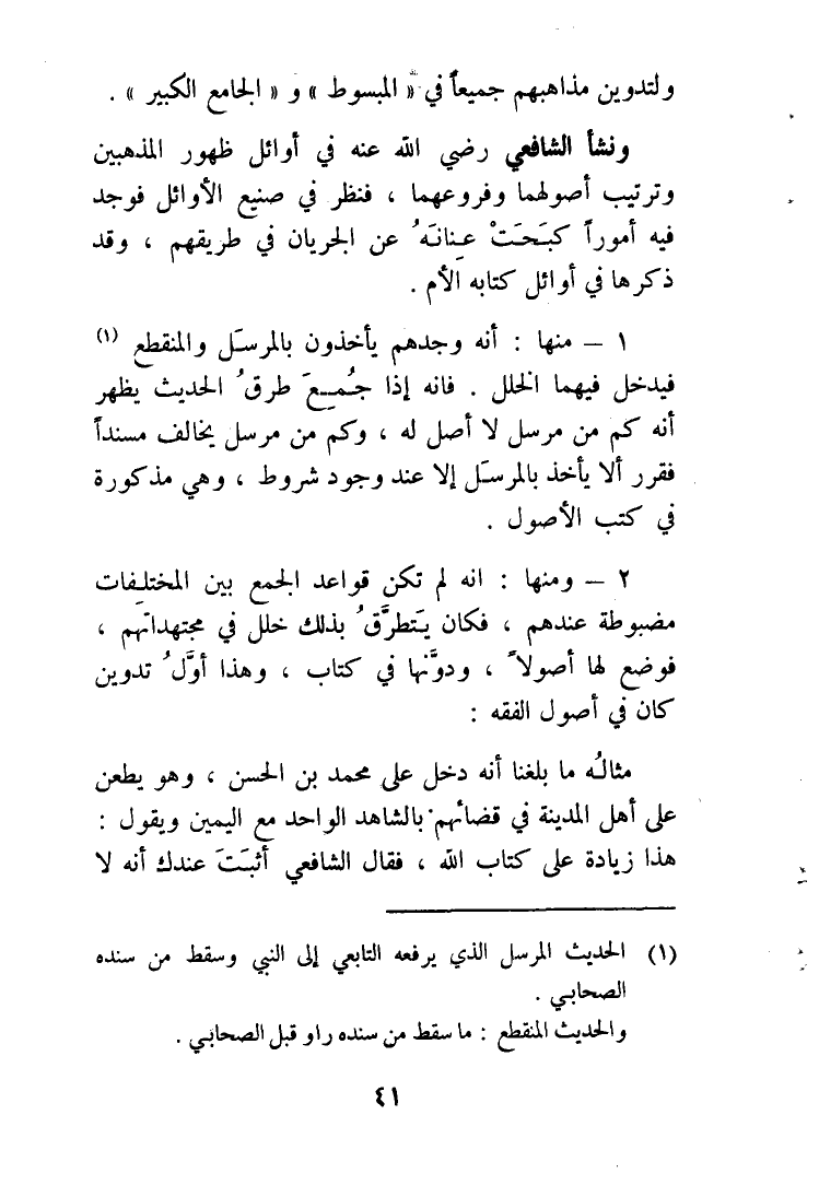 1 - مِنْهَا أَنه وجدهم يَأْخُذُونَ بالمرسل والمنقطع فَيدْخل فيهمَا الْخلَل فانه إِذا جمع طرق الحَدِيث يظْهر أَنه كم من مُرْسل لَا أصل لَهُ وَكم من مُرْسل يُخَالف مُسْندًا فقرر أَلا يَأْخُذ بالمرسل إِلَّا عِنْد وجود شُرُوط وَهِي مَذْكُورَة فِي كتب الْأُصُول