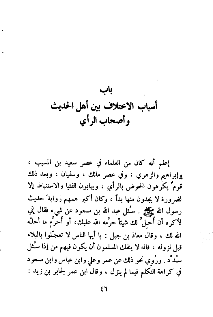 بَاب أَسبَاب الِاخْتِلَاف بَين أهل الحديث وَأَصْحَاب الرَّأْي