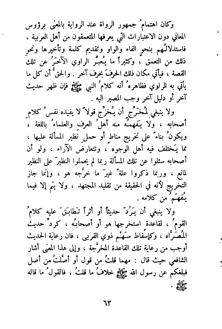 وَكَانَ اهتمام جُمْهُور الروَاة عِنْد الرِّوَايَة بِالْمَعْنَى برؤوس الْمعَانِي دون الاعتبارات الَّتِي يعرفهَا المتعمقون من أهل الْعَرَبيَّة فاستدلالهم بِنَحْوِ الْفَاء وَالْوَاو وَتَقْدِيم كلمة وتأخيرها وَنَحْو ذَلِك من التعمق وَكَثِيرًا مَا يعبر الرَّاوِي الآخر عَن تِلْكَ الْقِصَّة فَيَأْتِي مَكَان ذَلِك الْحَرْف بِحرف آخر وَالْحق أَن كل مَا يَأْتِي بِهِ الرَّاوِي فَظَاهره أَنه كَلَام النَّبِي صلى الله عَلَيْهِ وَسلم فَإِن ظهر حَدِيث آخر أَو دَلِيل آخر وَجب الْمصير إِلَيْهِ