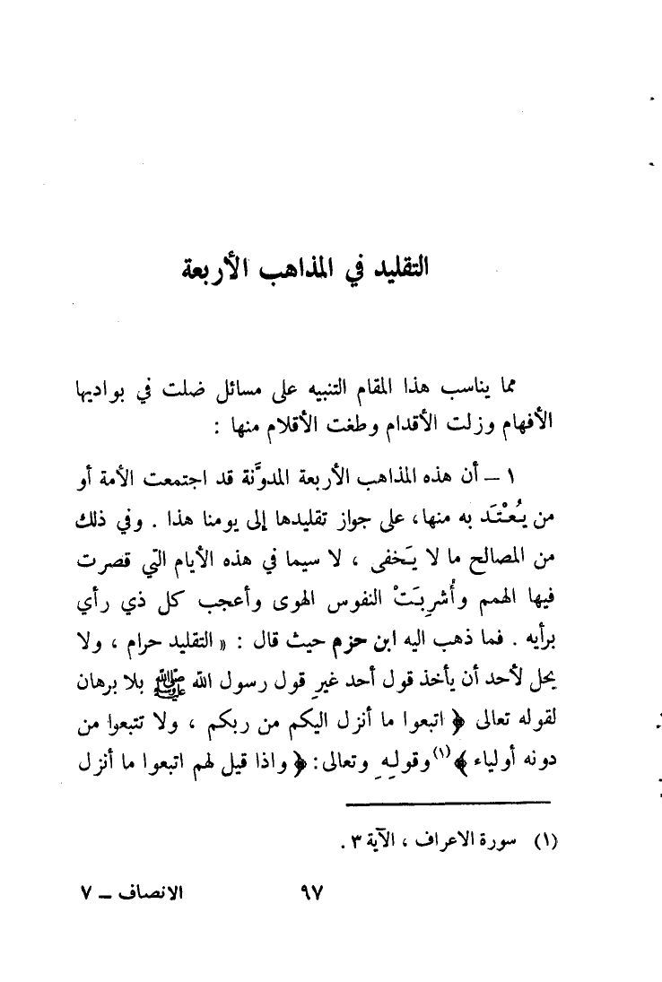 التَّقْلِيد فِي الْمذَاهب الْأَرْبَعَة