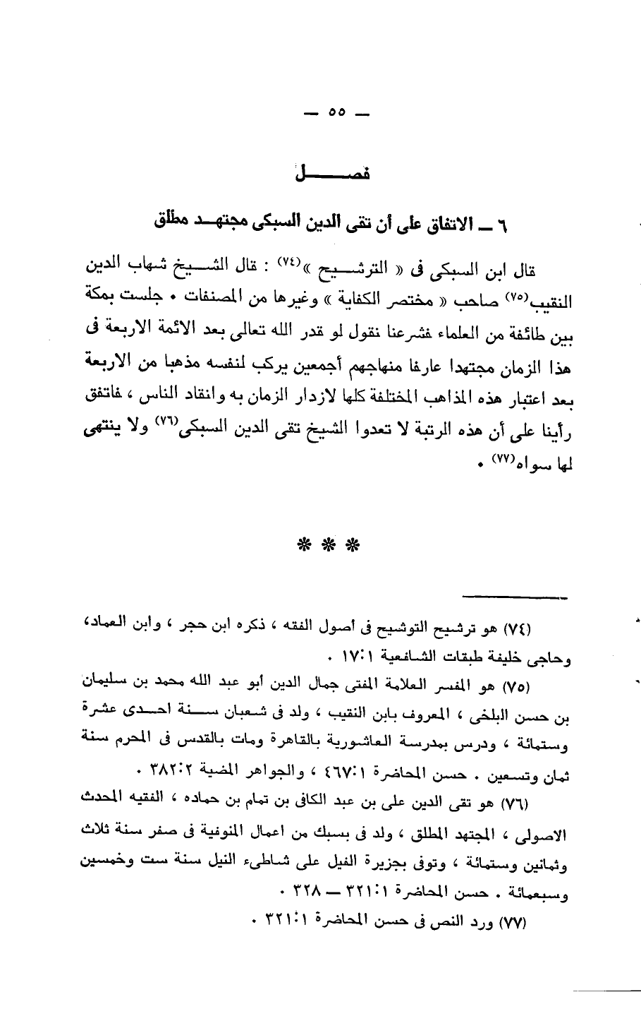 فصل 6 الِاتِّفَاق على أَن تَقِيّ الدّين السُّبْكِيّ مُجْتَهد مُطلق
