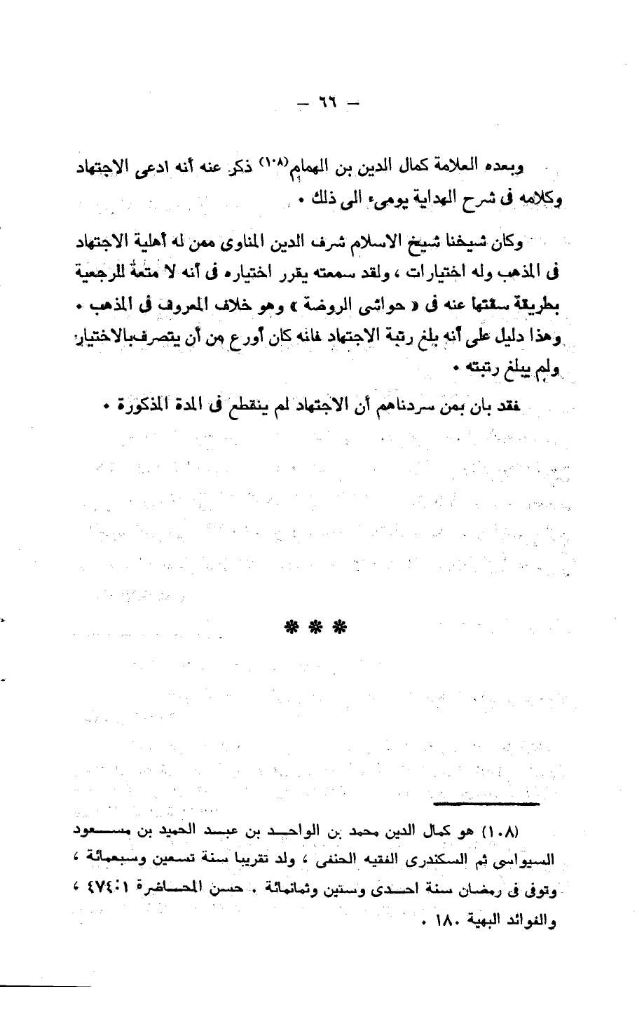 وَبعده الْعَلامَة كَمَال الدّين بن الْهمام ذكر عَنهُ أَنه إدعى الِاجْتِهَاد وَكَلَامه فِي شرح الْهِدَايَة يوميء إِلَى ذَلِك