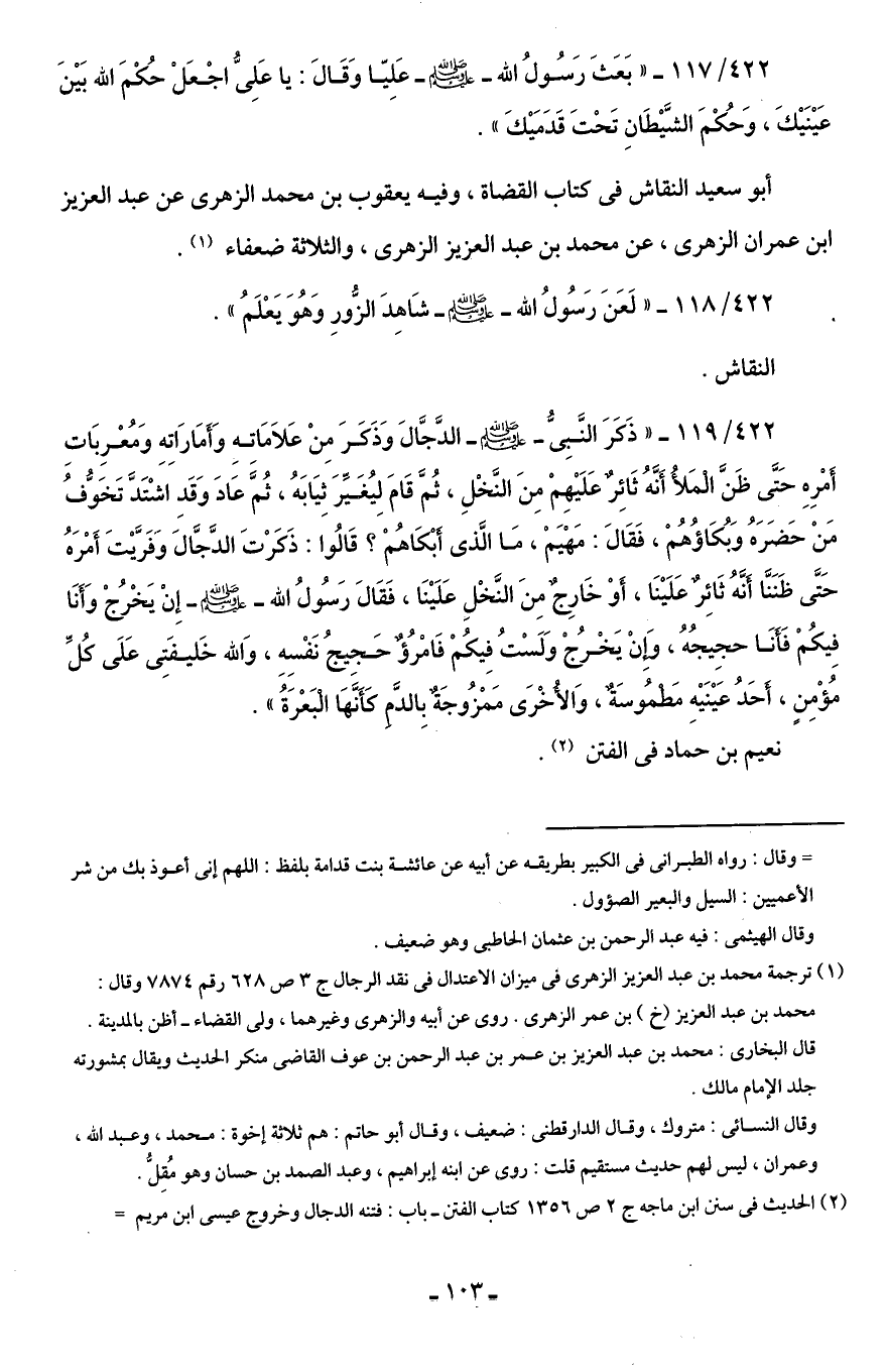 422/ 118 - "لَعَنَ رَسُولُ الله - صلى الله عليه وسلم - شَاهِدَ الزُّورِ وَهُوَ يَعْلَمُ".