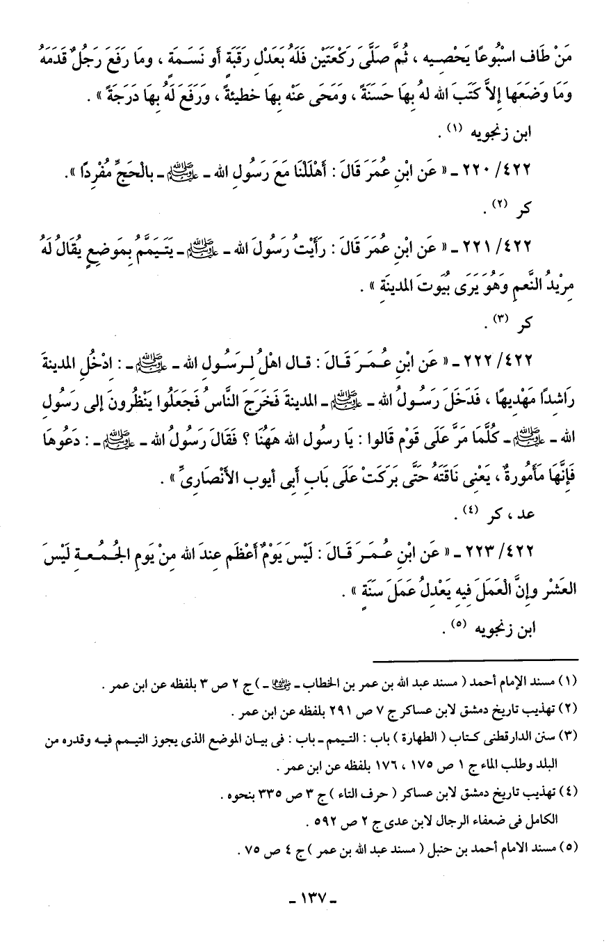 (¬5) مسند الإمام أحمد بن حنبل (مسند عبد الله بن عمر) ج 4 ص 75.
