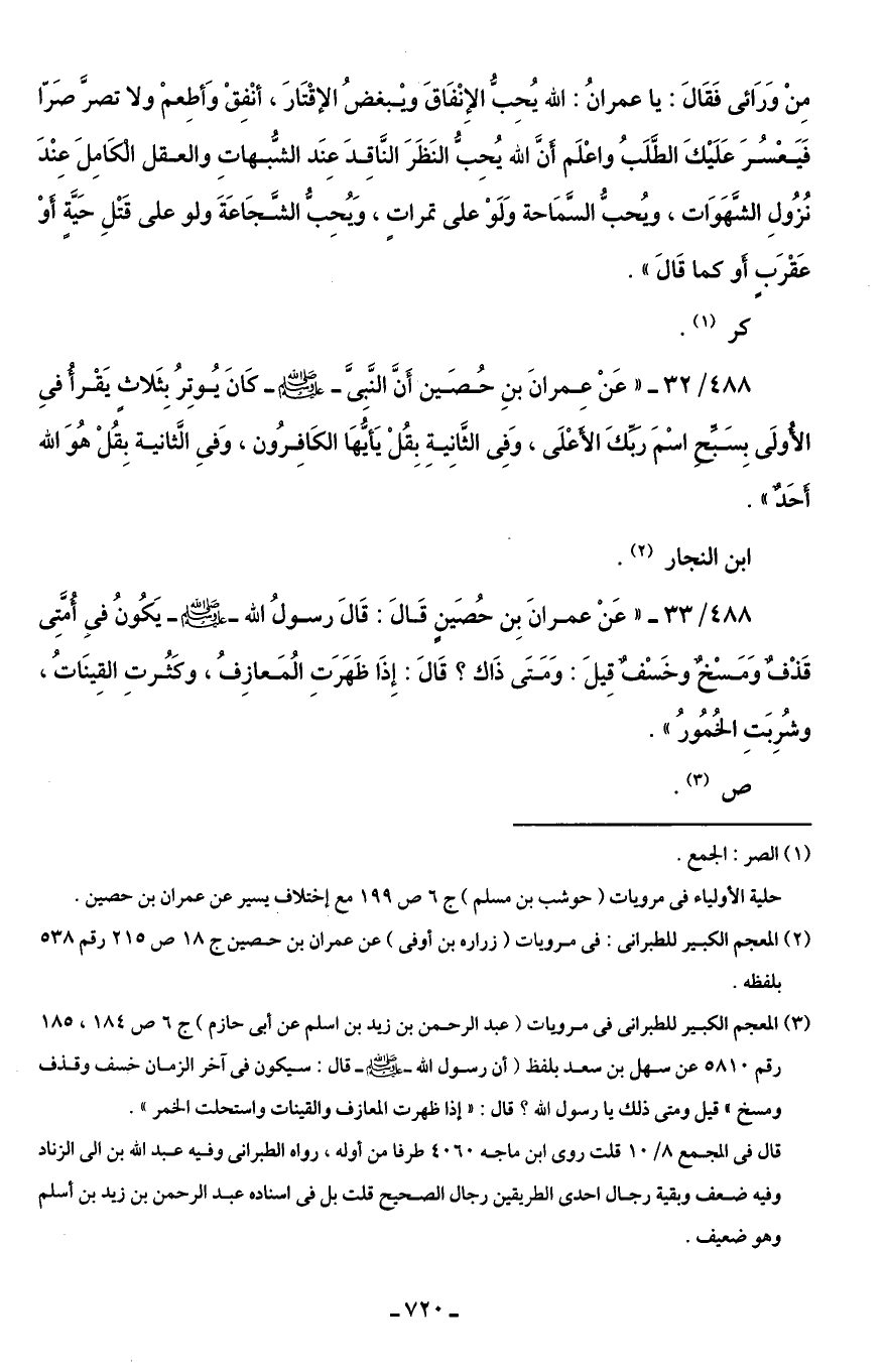 (¬2) المعجم الكبير للطبرانى: في مرويات (زراره بن أوفى) عن عمران بن حصين ج 18 ص 215 رقم 538 بلفظه.