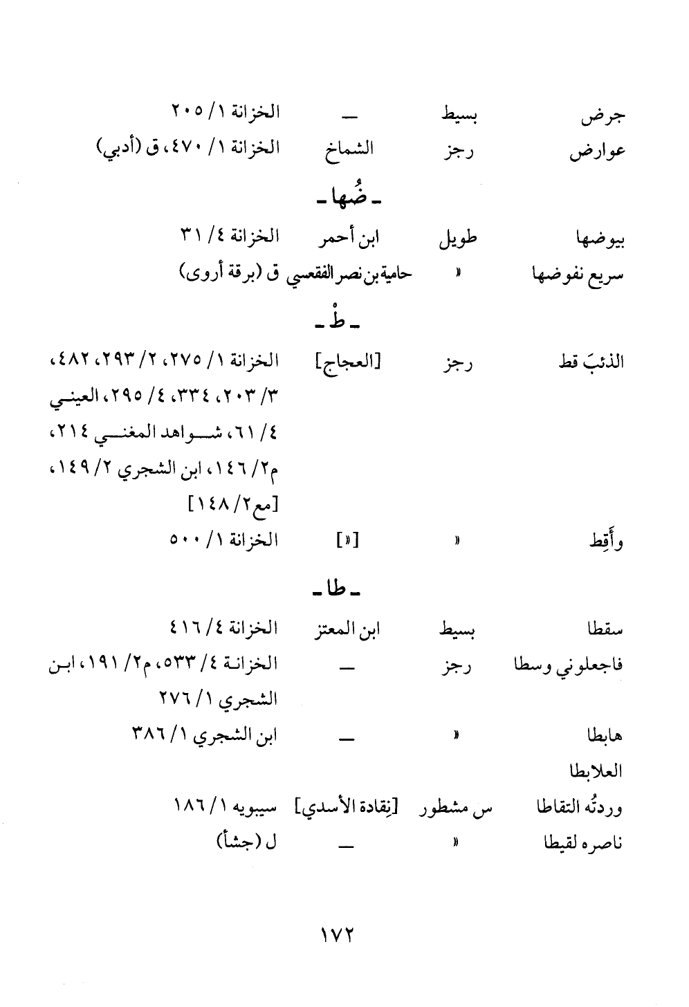 جرض بسيط ــ الخزانة ١/ ٢٠٥عوارض رجز الشماخ الخزانة ١/ ٤٧٠، ق (أدبي)