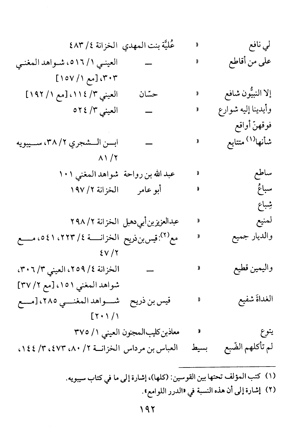 وأيدينا إليه شوارع ¶فوقهنّ أواقع ... « ... ــ ... العيني ٣/ ٥٢٤