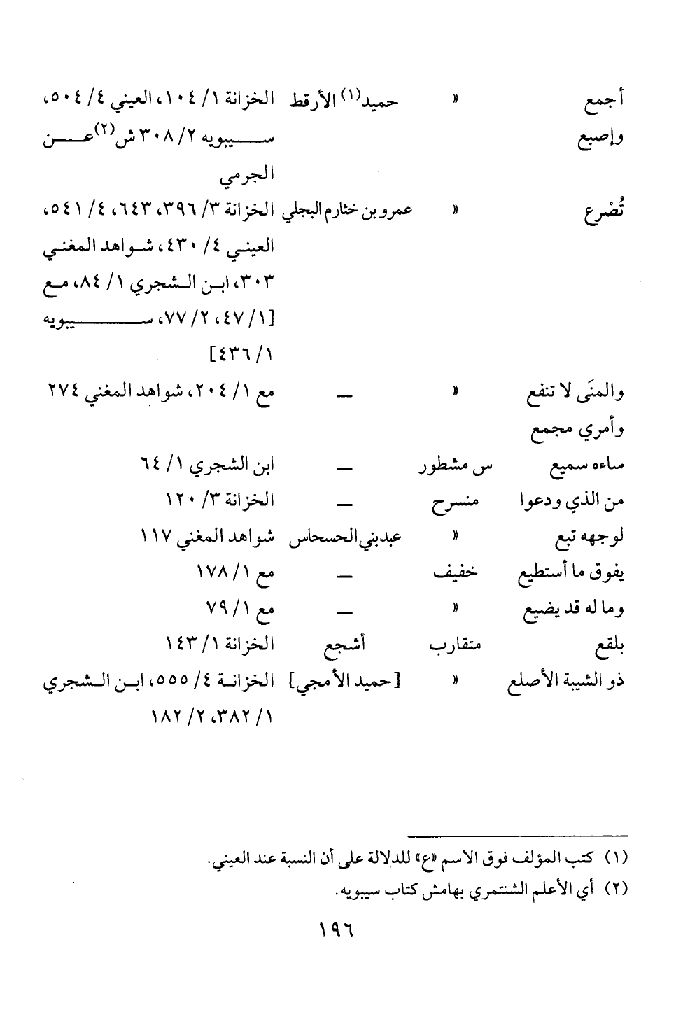 أجمع وإصبع « حميد (¬١) الأرقط الخزانة ١/ ١٠٤، العيني ٤/ ٥٠٤، سيبويه ٢/ ٣٠٨ ش (¬٢) عن الجرمي تُصْرع « عمرو بن خثارم البجلي الخزانة ٣/ ٣٩٦، ٦٤٣، ٤/ ٥٤١، العيني ٤/ ٤٣٠، شواهد المغني ٣٠٣، ابن الشجري ١/ ٨٤، مع [١/ ٤٧، ٢/ ٧٧، سيبويه ١/ ٤٣٦]والمنَى لا تنفع وأمري مجمع « ــ مع ١/ ٢٠٤، شواهد المغني ٢٧٤ ساءه سميع س مشطور ــ ابن الشجري ١/ ٦٤من الذي ودعوا منسرح ــ الخزانة ٣/ ١٢٠لوجهه تبع « عبد بني الحسحاس شواهد المغني ١١٧يفوق ما أستطيع خفيف ــ مع ١/ ١٧٨وما له قد يضيع « ــ مع ١/ ٧٩بلقع متقارب أشجع الخزانة ١/ ١٤٣ذو الشيبة الأصلع « [حميد الأمجي] الخزانة ٤/ ٥٥٥، ابن الشجري ١/ ٣٨٢، ٢/ ١٨٢