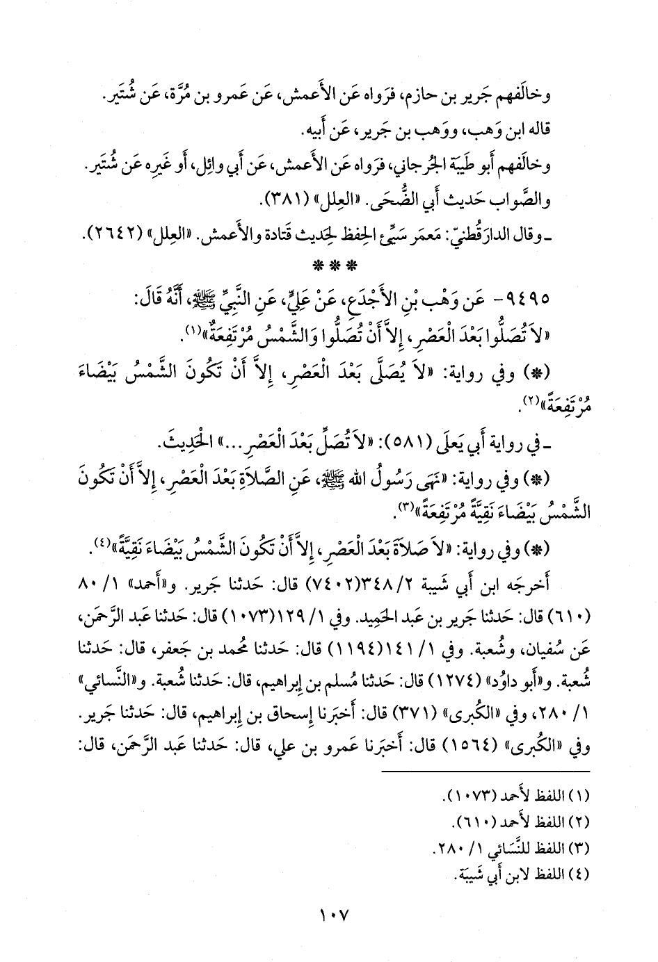 - في رواية أبي يَعلى (٥٨١): «لا تصل بعد العصر» الحديثَ.