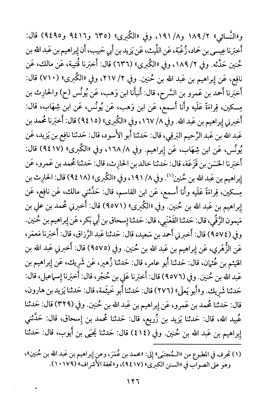 وفي ٨/ ١٦٧، وفي «الكبرى» (٩٤١٥) قال: أخبرنا محمد بن عبد الله بن عبد الرحيم البرقي، قال: حدثنا أَبو الأسود، قال: حدثنا نافع بن يزيد، عن يونس، عن ابن شهاب، عن إبراهيم. وفي ٨/ ١٦٨، وفي «الكبرى» (٩٤١٧) قال: أخبرنا الحسن بن قَزَعة، قال: حدثنا خالد بن الحارث، قال: حدثنا محمد بن عَمرو، عن إبراهيم بن عبد الله بن حنين (¬١). وفي ٨/ ١٩١، وفي «الكبرى» (٩٤١٨) قال: الحارث بن مسكين، قراءة عليه وأنا أسمع، عن ابن القاسم، قال: حدثني مالك، عن نافع، عن إبراهيم بن عبد الله بن حنين. وفي «الكبرى» (٩٥٧١) قال: أخبرني محمد بن علي بن ميمون الرَّقِّي، قال: حدثنا القَعنَبي، قال: حدثنا إسحاق بن أَبي بكر، عن إبراهيم بن حنين. وفي (٩٥٧٤) قال: أخبرني أحمد بن سعيد، قال: حدثنا عبد الرزاق، قال: أخبرنا مَعمَر، عن الزُّهْري، عن إبراهيم بن عبد الله بن حنين. وفي (٩٥٧٥) قال: أخبرني عبد الله بن الهيثم بن عثمان، قال: حدثنا أَبو عامر، قال: حدثنا زهير، عن شريك، عن إبراهيم بن عبد الله بن حنين. وفي (٩٥٧٦) قال: أخبرنا علي بن حُجْر، قال: أخبرنا إسماعيل، قال: حدثنا شَريك. و «أَبو يَعلى» (٢٧٦) قال: حدثنا أَبو خيثمة، قال: حدثنا يزيد بن هارون، قال: حدثنا محمد بن عَمرو، عن إبراهيم بن عبد الله بن حنين. وفي (٣٢٩) قال: حدثنا عُبيد الله، قال: حدثنا يزيد بن زُريع، قال: حدثنا محمد بن إسحاق، قال: حدثني إبراهيم بن عبد الله بن حنين. وفي (٤١٤) قال: حدثنا يحيى بن أيوب، قال: حدثنا