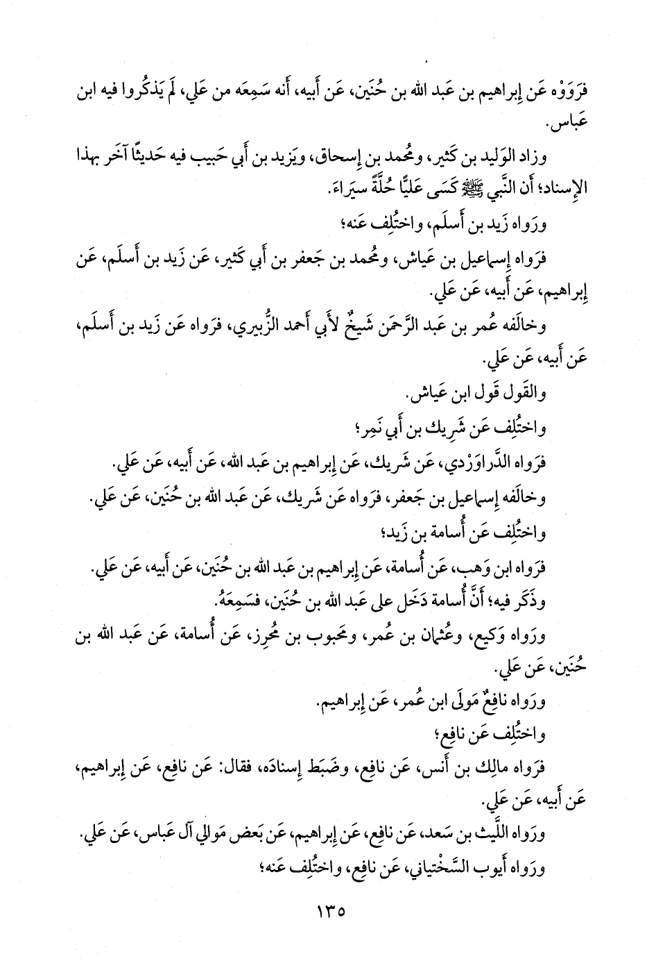 فقال بشر بن المُفَضَّل، والمُعتَمِر بن سليمان، وعبد الوَهَّاب الثقفي، وابن نُمير: عن عُبيد الله، عن نافع، عن ابن حنين، عن علي.