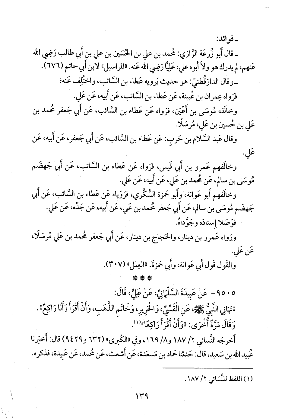 - قال أَبو عبد الرَّحمَن النَّسَائي: خالفه هشام ولم يرفعه.